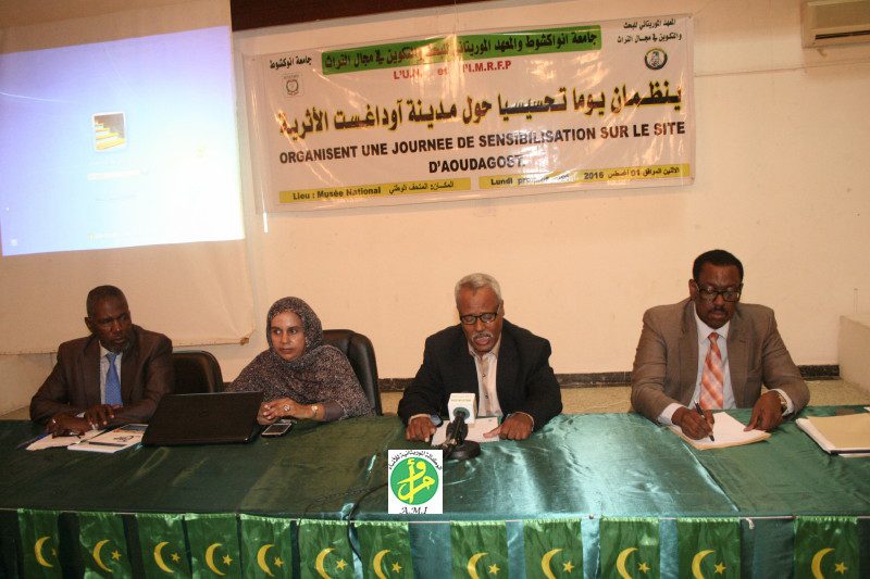 نظم المعهد الموريتاني للبحث والتكوين في مجال التراث بالتعاون مع جامعة نواكشوط صباح اليوم الاثنين في قاعة المتحف الوطني بنواكشوط يوما تحسيسيا حول مدينة آوداغست الاثرية الواقعة في مقاطعة تامشكط.
