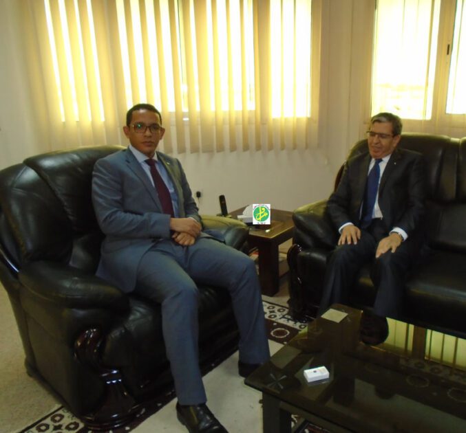 استقبل وزير النفط والطاقة والمعادن السيد محمد ولد عبد الفتاح صباح اليوم الأربعاء بمكتبه في نواكشوط سفيرالجزائرالمعتمد لدى موريتانيا سعادة السيد نور الدين خندودي.