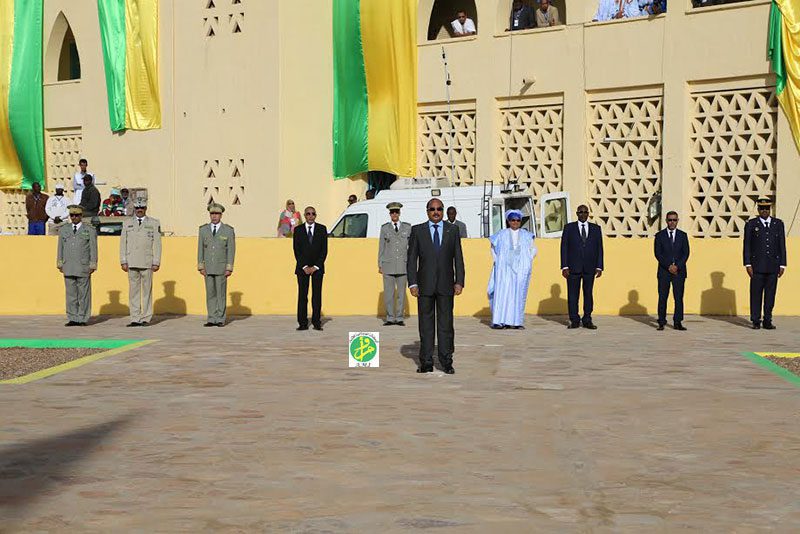 واستعرض رئيس الجمهورية رفقة قائد الأركان العامة للجيوش الفريق محمد ولد الشيخ محمد أحمد، على أنغام الموسيقى العسكرية، وحدات من كتيبة القيادة والخدمات والدرك الوطني والموسيقى العسكرية والحرس الوطني، قبل أن يصافح كبار الضباط في القوات المسلحة وقوات الأمن.