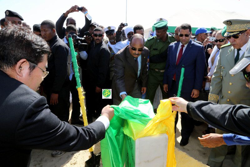 وضع رئيس الجمهورية السيد محمد ولد عبد العزيز صباح اليوم الثلاثاء بمنطقة “اريايه” بمركز انجاغو الإداري الحجر الأساس لميناء متعدد الأبعاد تبلغ كلفته 352 مليون دولار أمريكي على نفقة الدولة الموريتانية وتنفذه الشركة الصينية “بلي تكنلوجي”.