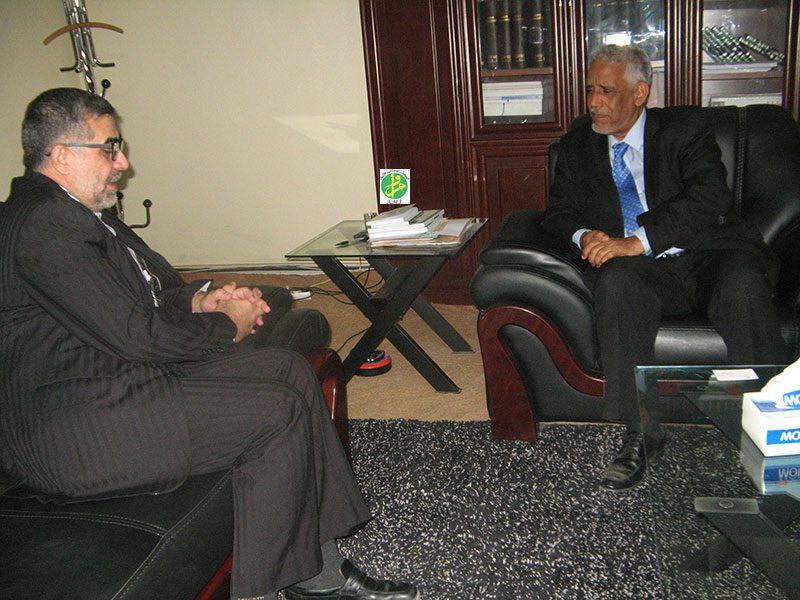 استقبل وزير العدل الاستاذ ابراهيم ولد داداه ظهر اليوم الأربعاء بمكتبه في نواكشوط سعادة السيد محمد عمراني سفير الجمهورية الاسلامية الايرانية المعتمد في نواكشوط .