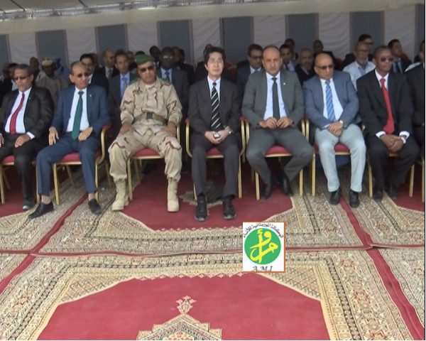 أشرف رئيس سلطة منطقة انواذيبو الحرة السيد محمد ولد الداف رفقة والي داخلت انواذيبو السيد محمد فال ولد احمد يورا والسفير الياباني المعتمد لدى موريتانيا سعادة السيد هيستيغي شميزي على حفل انطلاق تشغيل توسعة ميناء الصيد التقليدي بانواذيبو المعروف بمؤسسة خليج الراحة .