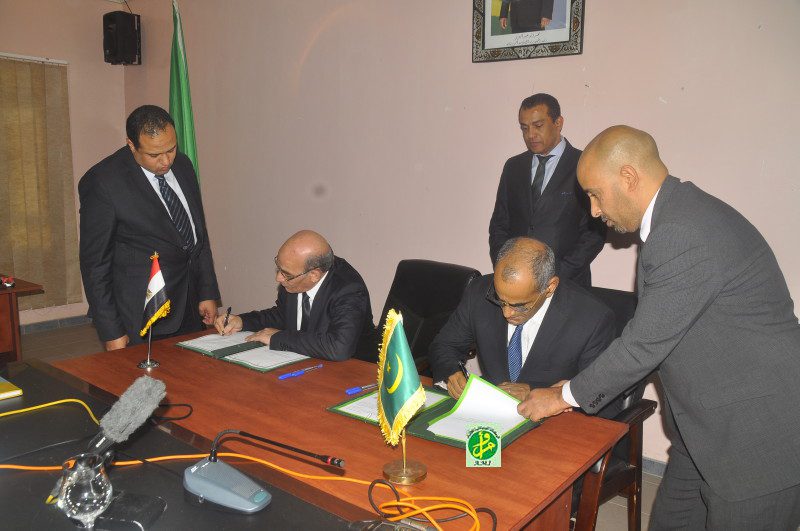 تم اليوم في نواكشوط التوقيع بين موريتانيا ومصر على برامج تنفيذية تتعلق بميادين الصيد والزراعة والبيطرة تضمن نقلة نوعية في العلاقات بين البلدين في الميادين االمذكورة .