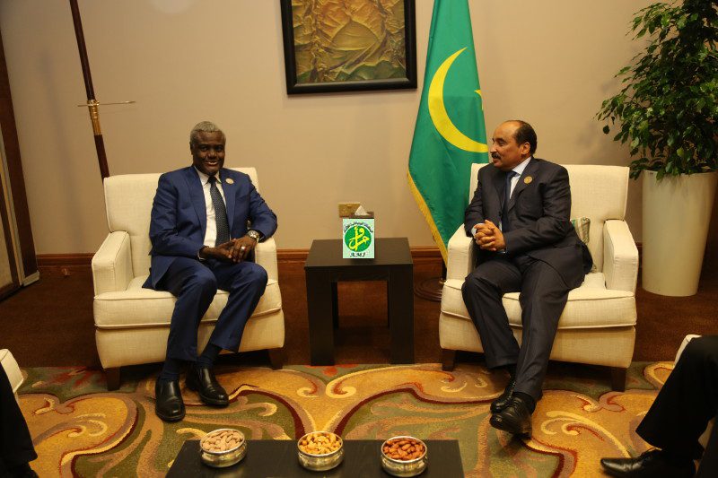 استقبل فخامة رئيس الجمهوريةالسيد محمد ولد عبد العزيز صباح اليوم الاربعاء على هامش مشاركته في اجتماع مجلس جامعة الدول العربية على مستوى القمة في دورته 28 بالبحر الميت بالاردن السيد موسى فكي رئيس لجنة الاتحاد الافريقي الذي يمثل الاتحاد في هذه القمة.
