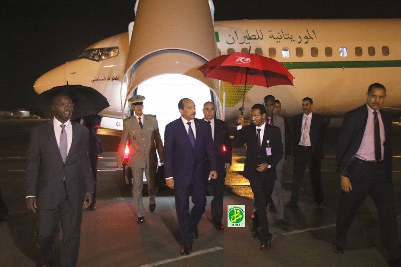 وصل فخامة رئيس الجمهورية السيد محمد ولد عبدالعزيز فجر اليوم الاثنين إلى العاصمة الاثيوبية أديس أبابا للمشاركة فى أعمال القمة التاسعة والعشرين العادية لرؤساء دول وحكومات الاتحاد الافريقى التي تلتئم هناك يومي 03 و 04 يوليو الجاري.