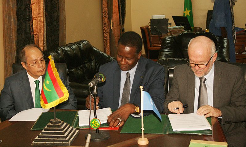 وقع السيد آميدي كمرا،وزير البيئة والتنمية المستدامة اليوم الاربعاء في مكتبه بنواكشوط مع الممثل المقيم لبرنامج الامم المتحدة للتنمية في نواكشوط السيد ماريو ساماجا،ممثل منظمة الفاو في بلادنا وكالة على اتفاقية مشروع جهوي لاعادة تأهيل 5000 هكتار في كل من بلادنا والسودان وأريتيريا بغلاف مالي يصل الى 3 ملايين دولار أمريكي بتمويل من تركيا عن طريق وزارة الغابات وشؤون المياه بتنفيذ من منطمة الأمم المتحدة للأغذية والزراعة الفاو ، وعلى مدى ثلاث سنوات أي في الفترة ما بين 2018 و2021.