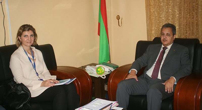 أجرى مفوض حقوق الإنسان والعمل الإنساني والعلاقات مع المجتمع المدني، السيد محمد الأمين ولد سيدي، صباح اليوم الأربعاء، بمكتبه في نواكشوط مباحثات مع رئيسة بعثة المنظمة الدولية للهجرة في موريتانيا، السيدة لورا لونجاروتي.
