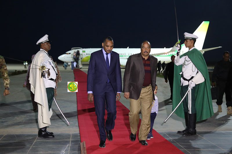 واستُقبل رئيس الجمهورية لدى وصوله مطار نواكشوط الدولي- أم التونسي- من طرف الوزير الأول السيد محمد سالم ولد البشير، ووزراء العدل، والشؤون الخارجية والتعاون، والدفاع الوطني، والداخلية واللامركزية، وقائد الأركان الخاصة لرئيس الجمهورية، والمديرة المساعدة لديوان رئيس الجمهورية، ووالي نواكشوط الغربية، ورئيسة المجلس الجهوي لانواكشوط.
