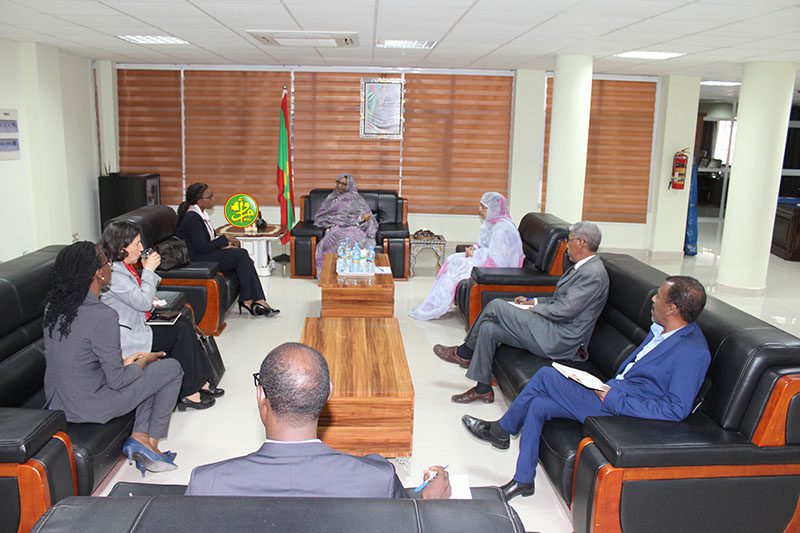 وجرت المقابلة بحضور الأمينة العامة للوزارة السيدة العالية بنت منكوس والمستشار الفني السيد محمد ولد حنين بالإضافة إلى مديري الدراسات والتعاون والتجارة الخارجية بنفس القطاع .