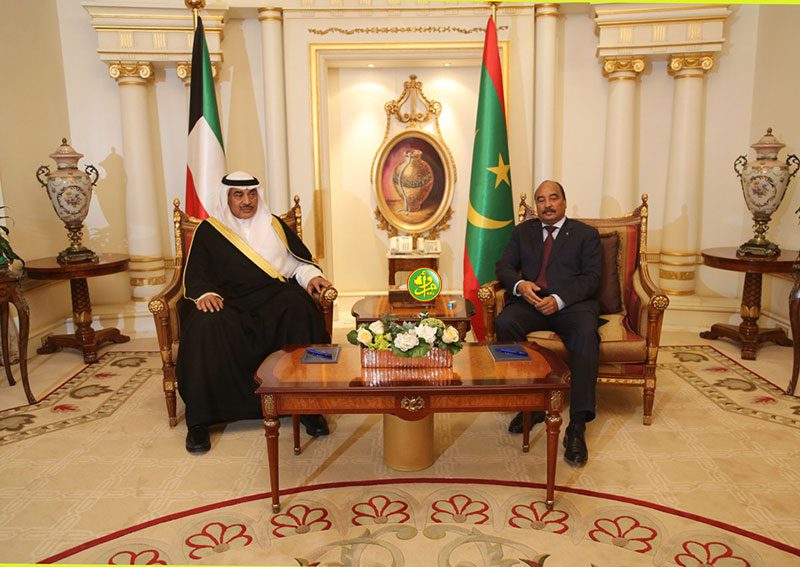 استقبل فخامة رئيس الجمهورية السيد محمد ولد عبد العزيز بعد ظهر اليوم بمقر إقامته في قصر بيان في الكويت ضمن برنامج الزيارة الرسمية التي يؤديها حاليا لدولة الكويت،الشيخ صباح الخالد الحمد الصباح ،نائب رئيس مجلس الوزراء ووزير الخارجية الكويتي .