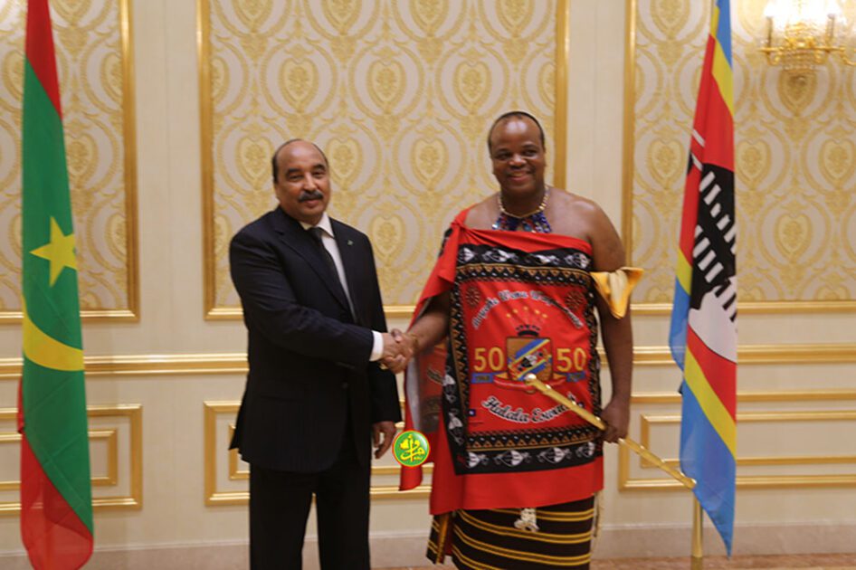 أجرى فخامة رئيس الجمهورية السيد محمد ولد عبد العزيز، مساء اليوم الاربعاء بالقصر الملكي رويال لوزيتا بالاس، مباحثات مع مضيفه جلالة الملك مسواتي الثالث، وذلك ضمن برنامج زيارة الدولة التي يؤديها فخامة رئيس الجمهورية حاليا لمملكة اسواتيني.